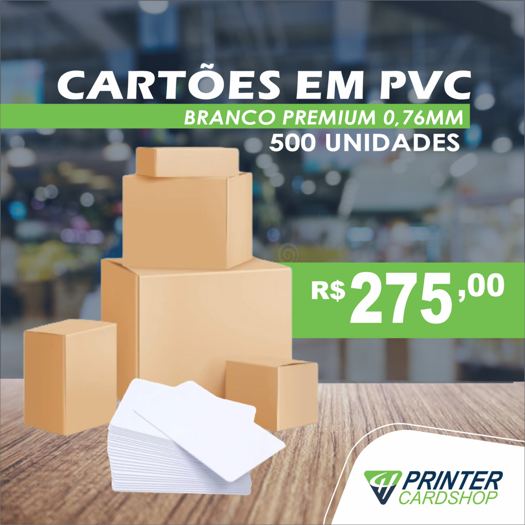 Cartão Branco PVC ISO CR-80 0,76mm Premium - 500 unidades